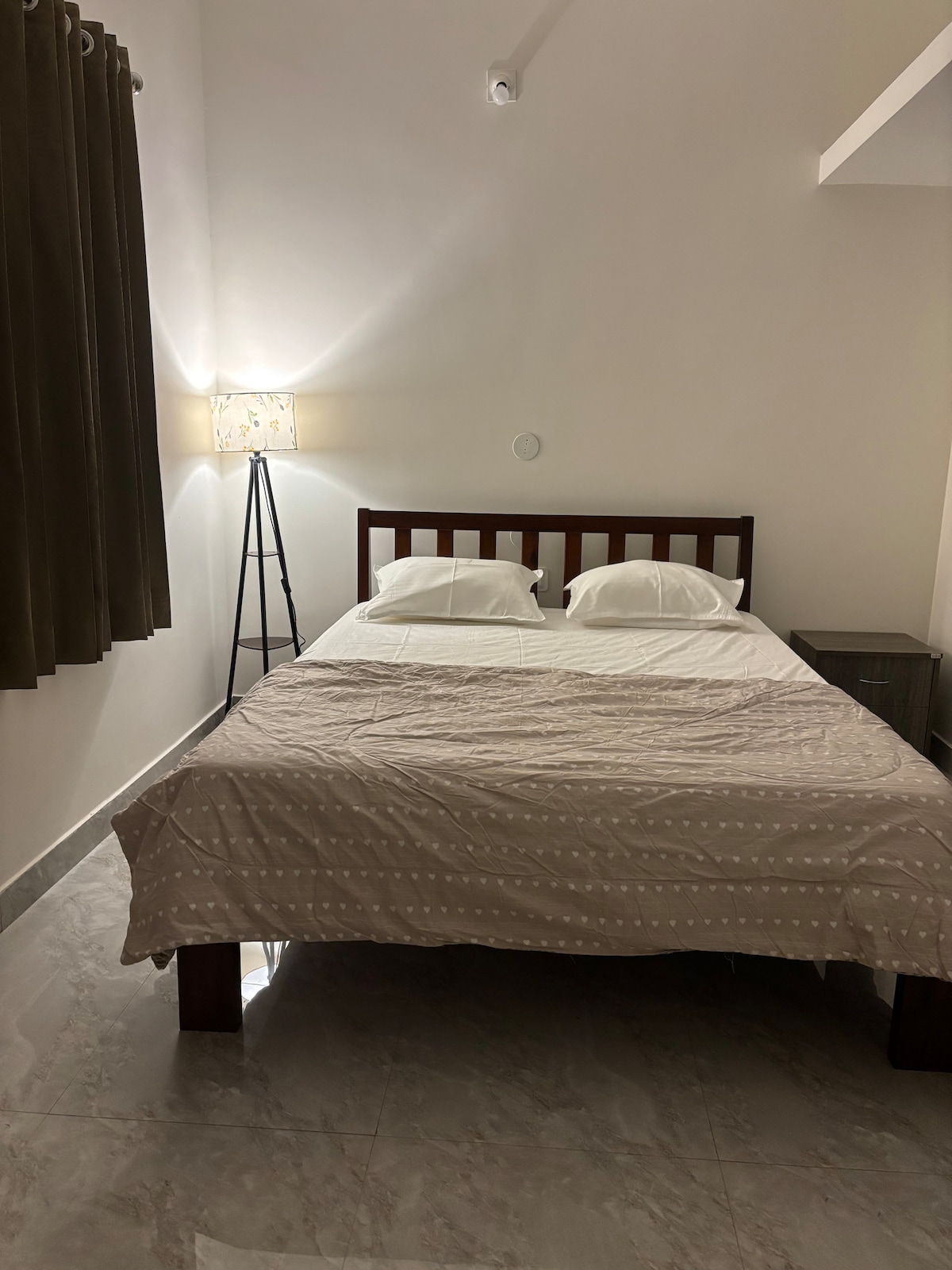 DIA is a cozy, air-conditioned one-bedroom space located in the heart of Mangalore city. This bright, ground-floor unit features large windows, a comfortable bed (king-size or single), a kitchen, a living area, and an attached bathroom. It offers easy access to public transportation, with a rickshaw stand nearby for convenient travel.