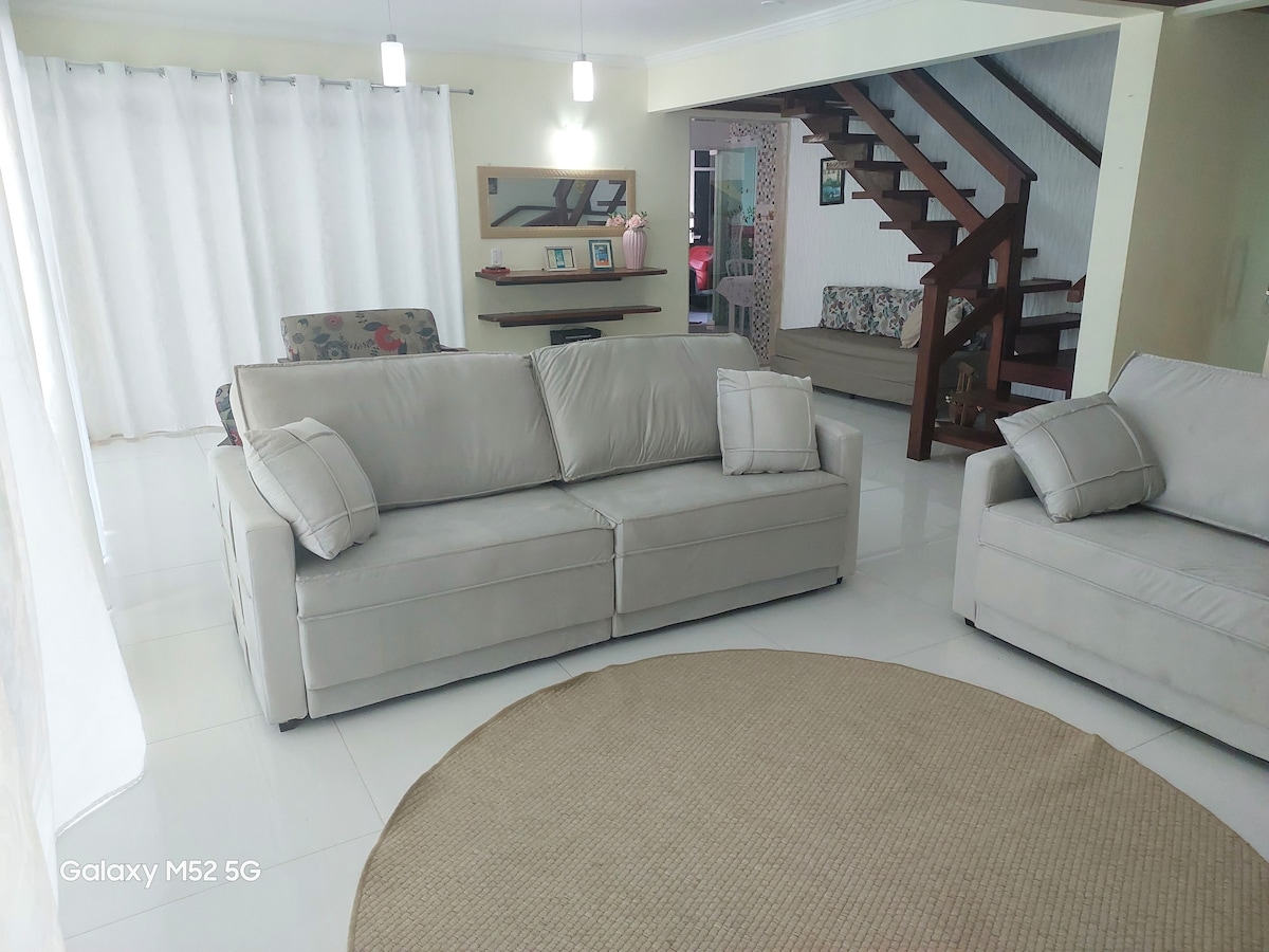 Confortável, espaçosa ideal para ir com a família ou mais 2 ou 3 casais, é bem arejada, além do ar-condicionado no quarto e nas suítes tem ventiladores de teto com controle remoto tbm, a sala tem som ambiente com bluetooth embutido nos tetos ao qual vc pode tocar sua play list favorita, temos na casa tbm uma cervejeira e uma adega.