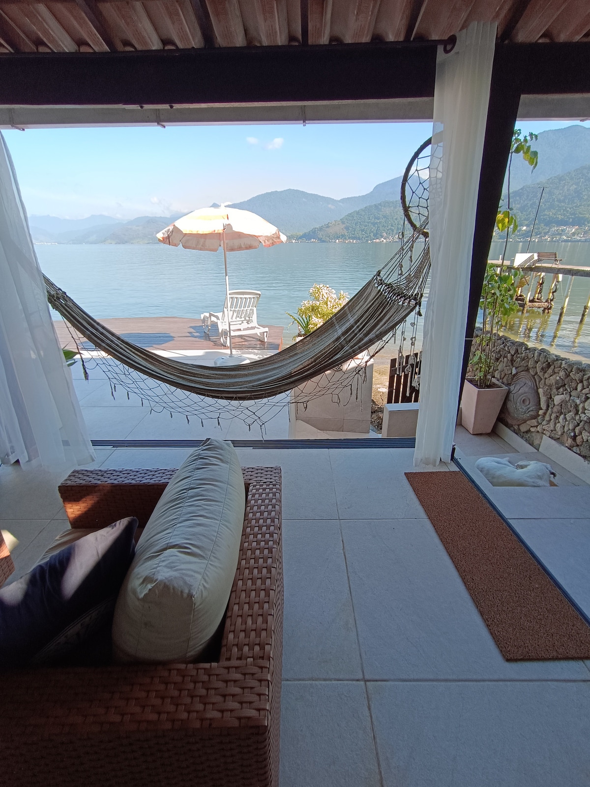 Just 1.5 hour South of Rio De Janeiro, beach-front, wonderful huge garden and tropical paradise. Main house and separate guest 2 suite house. Caretakers in separate building on-site . taxi boat arrival/departure by taxi boat Social Areas • Living + Dining Room: Open-plan, split level living + dining area at the front of the house | top level is the living area with 2 couches & a coffee table | down a few steps is the dining area with a 10-person table, large windows with an ocean view