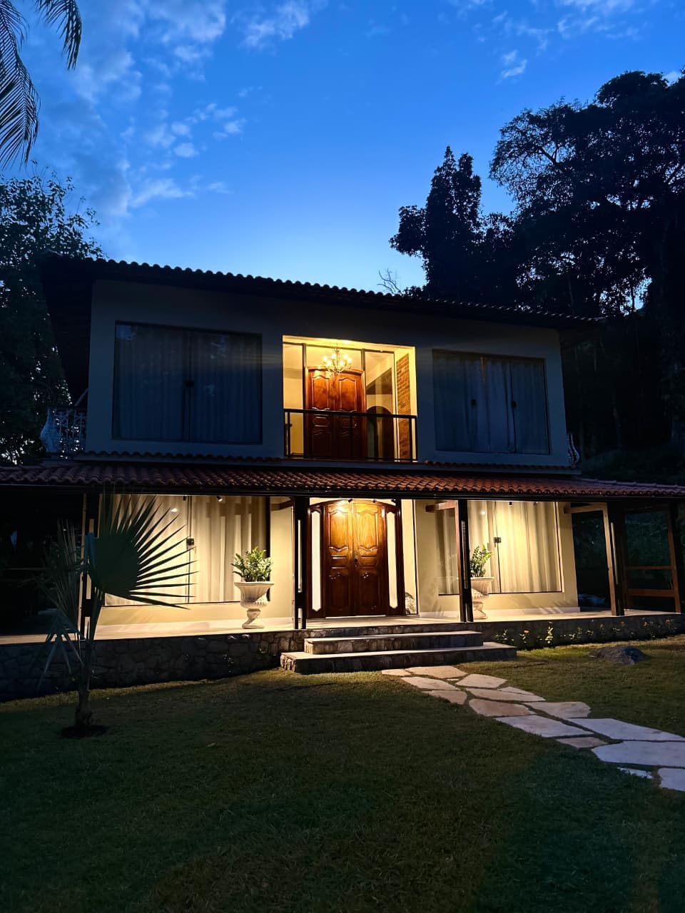 Localizada dentro da fazenda ENCANTADO, este aconchegante bangalô é em terreno de 2.1 ha com a riqueza da biodiversidade em meio à mata atlântica e com a exuberância do rio transparente dentro do terreno. Casa projetada e construída pelo arquiteto Helio Pellegrino. Perfil do visitante: Quem ama estar em meio à natureza, à cachoeiras, gosta de paz, silêncio e total privacidade. Não se preocupa c/ luxo e tem vontade de desconectar da vida urbana e não tem fobia de animais silvestres.