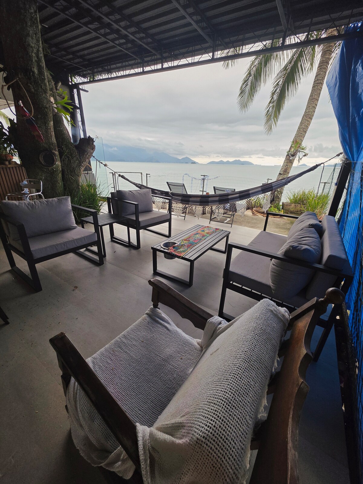 Seu refúgio à beira-mar em Mangaratiba-RJ. Anexo semi-independente, simples e aconchegante, com cama de casal, TV smart, sofá-cama, ventiladores, pequena cozinha e banheiro externo privativo. Acesso pelo quintal. Áreas externas compartilhadas: varanda e 1 vaga de garagem. Hospedagem em modelo autônomo, com self check-in e check-out automáticos. Ideal para pessoas independentes. Espaço pet. Serviços adicionais sujeitos a cobranças.