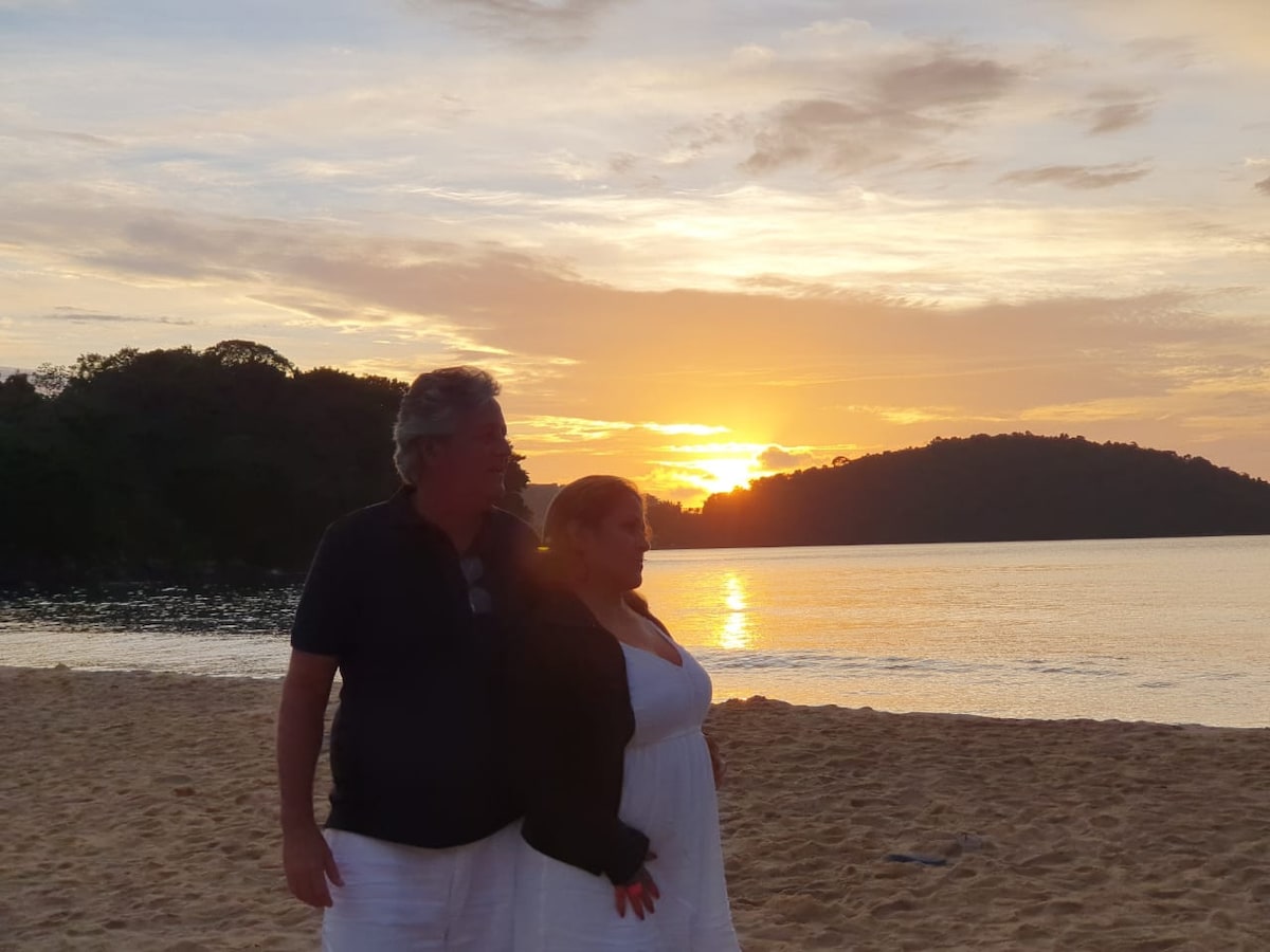 ideal para 🌙 de mel, ambiente familiar, tranquilo, estacionamento no portão, rua sem saída. Distância de +/- 4 min andando até o mar, vista para praia e montanhas, ideal para família e, temporada para serviços local de empresas . Não é compartilhado com outros hóspedes .