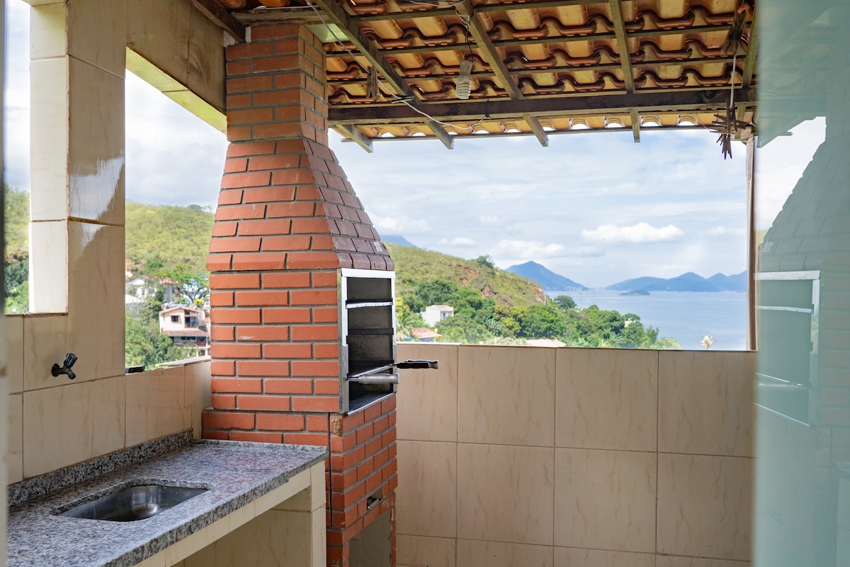 Casa com deslumbrante vista panorâmica para o mar e a montanha, localizada na Praia do Apara, a 2,5 km do centro de Mangaratiba. Ambiente familiar, tranquilo, para quem busca um local para relaxar e apreciar a natureza. Praias de água cristalina e sem ondas em toda redondeza, ideal para famílias com crianças e idosos.