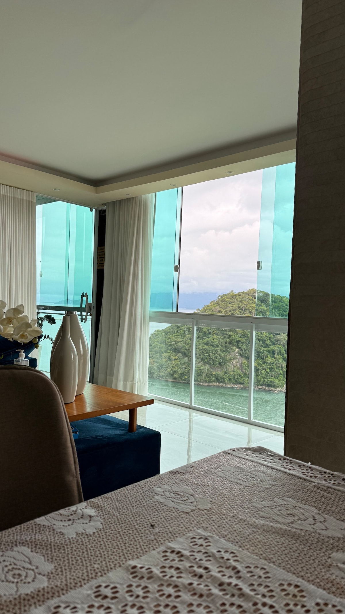 Acorde com o som do mar em um dos condomínios mais completos de Mangaratiba. Nosso apê tem vista deslumbrante do mar em todos os cômodos, é mobiliado e fica em um dos blocos mais próximos da praia e do clube — detalhe essencial no Porto Real. • 2 quartos (1 suíte) + sala com varanda • Vista do mar em todos os ambientes • Wi-Fi • 1 vaga de garagem • Cozinha completa e equipada • Condomínio com piscinas, academia, quadras e segurança 24h • 10-15min do Club Med, ideal para convidados de casamentos