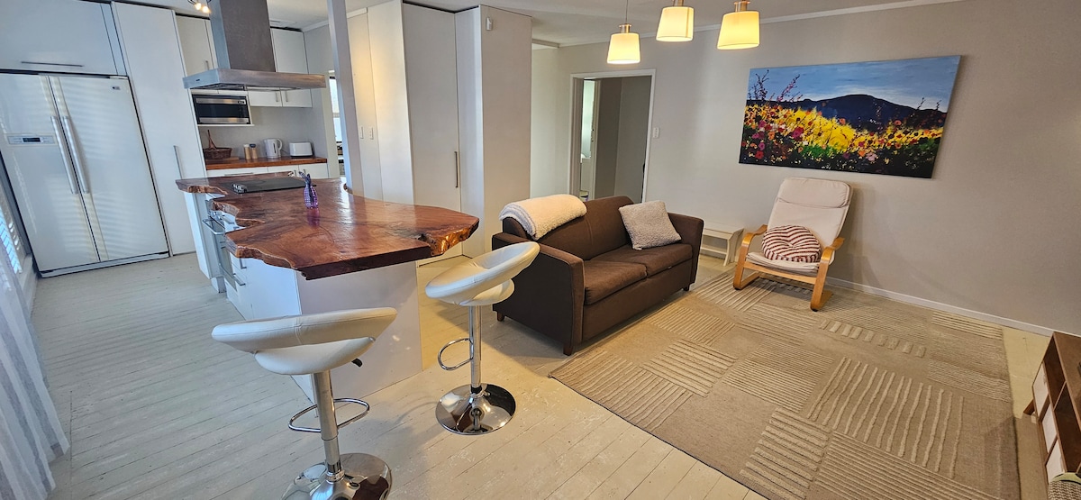 TARIFF Room 1 Queen Bed one or two people $180.00 per night Room 2 Queen Bed each extra person $50.00 per night. The accommodation is the ground floor unit of our two story house. It is 73sq meters with full kitchen and one combined Bathroom and Laundry. It is a modern, spacious and Self catering A two day booking is required on Public weekend holidays and 25th-26th December A 4 day booking from the 30th Dec to 2nd January We do not do couch surfing .. as they say