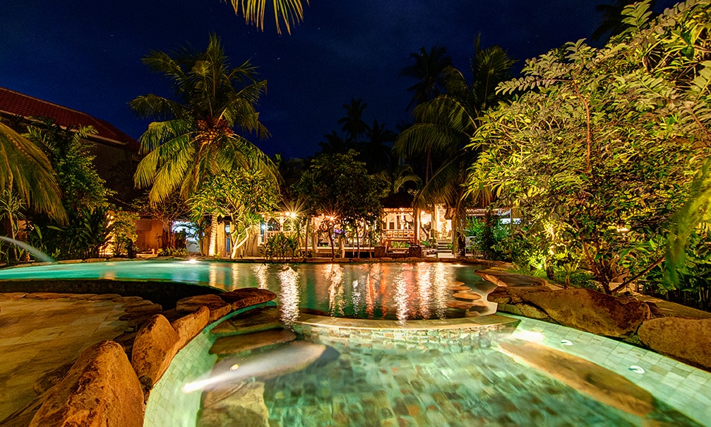 Situated in serene and beautiful Candidasa, Villa Dewisita is a comfortable Balinese style, 3 bedroom villa with an absolute waterfront private pool and patio. Bars , shops and restaurants are within a 5 minute walk making Villa Dewisita and Candidasa generally, a great base for visiting major sights of Bali or just relaxing in the sun. We own two villas on this large, ocean front property and therefore an ideal arrangement for single family or group getaways - see Villa Laksmana