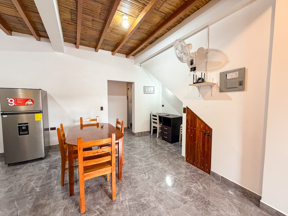Conecta con la naturaleza en esta escapada inolvidable. Mini casa doble altura tipo loft sin divisiones, con mezzanine, en la planta baja se encuentra una cama de tres plazas, la cocina equipada, baño con calefón eléctrico, mesa comedor, Smart Tv con cable. Se conecta con el mezzanine con una hermosa Escalera en caracol. La parte superior cuenta con una cama de dos plazas y otra de una plaza y media. Aire split con capacidad para todo el loft y ducha exterior. Parqueo y guardianía las 24 horas.
