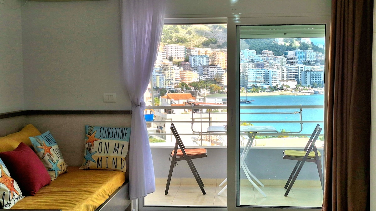 Have you ever imagine waking up from the sound of the waves in a big, bright apartment with a Maldives alike seaview? This is a very spacious apartment in the very first line from the sea. The apartment is furnished with modern furnitures and appliances. It is located in the port neighborhood of Saranda in a 10minutes walk from the center.Relax in a peaceful enviroment and enjoy the endless blue.