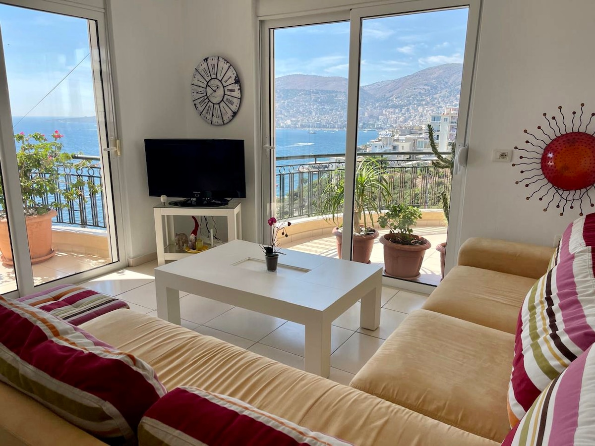 Have you ever imagine waking up from the sound of the waves in a big, bright apartment with a Maldives alike seaview? This is a very spacious apartment in the very first line from the sea. The apartment is furnished with modern furnitures and appliances. It is located in the port neighborhood of Saranda in a 10minutes walk from the center.Relax in a peaceful enviroment and enjoy the endless blue.
