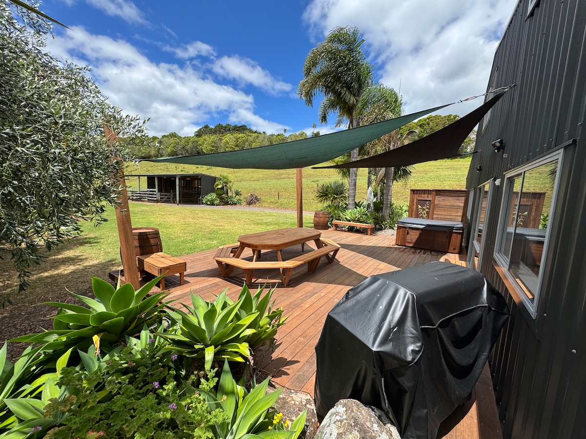 带户外水疗浴缸的Kiwi Call乡村小屋