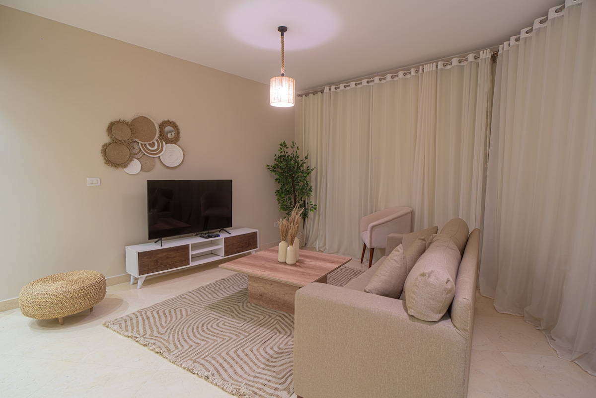 Lemon Spaces offers a fully furnished 2-bedroom Pool View apartment with internal roof access, in the heart of Mangroovy, that entails a seamless blend of comfort and style. The well-equipped kitchen is ready for your culinary adventures. Nestled in Mangroovy, it provides a relaxed atmosphere with convenient access to stunning beaches, lively marinas with mouthwatering dining options & and top-of-the-line local amenities. *Enjoy a daily breakfast by the beach when booking this space