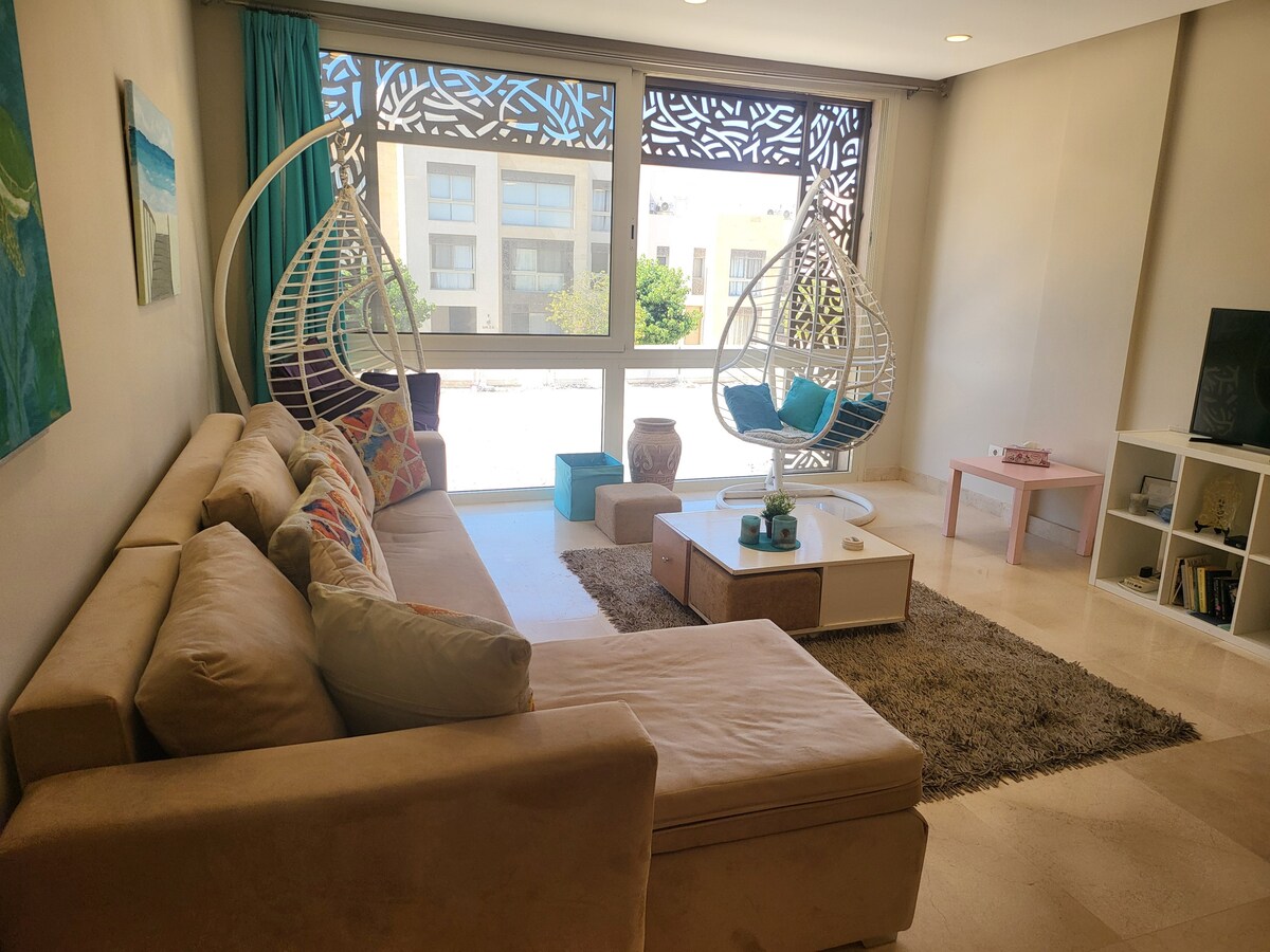 Enjoy ur vacation in Mangroovy residence at El Gouna with free acces to the beach & pool . It modern, bright, full equipped . perfect for couples and families in central location. its 5 min walking to Abu tig marina where restaurants & cafes are located. 10 min walking to KBC kite beach center. - 2 master bedrooms ( 3 beds) - 2,5 bathroom - sofa bed in sitting area - terrace with sitting area with swing - free parking outside -sitting balcony where you can have your morning coffee.