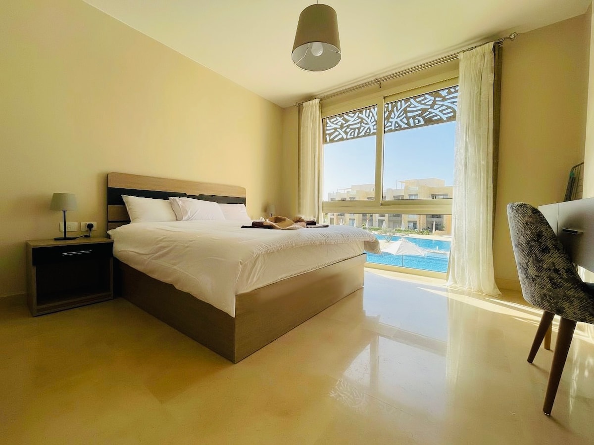 M7 POOL IS UNDER CONSTRUCTION UNTIL 15TH OF MARCH) Seaview apartment located in Mangroovy Residence - a tranquil area of El Gouna - ready to entertain you all year long with beach vibes under the sunbeams. Situated just 140 meters from the private beach with easy access to all surrounding hotspots and facilities. The amenities of this modern apartment include free access to the pool, beach, parking, and Wi-Fi.