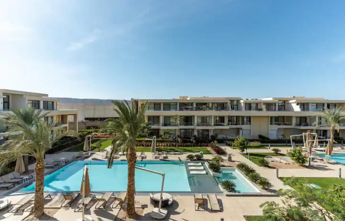 Enjoy a stylish experience at this centrally-located place. Directly infront of Fanadir new Marina - 2 bedroom apartment + private roof with sea and pools view . 2 bedrooms / sea View + 1 terrace 2 bathrooms kitchen with all the essentials Terrace overlooking mangroovy swimming pools and kite center. Access to all Mangroovy residence Facilities: swimming pools mangroovy privat Beach Premium Location 3 minutes walk to mangroovy beach 5 minutes walk to kite schools 10 minutes walk to Marina