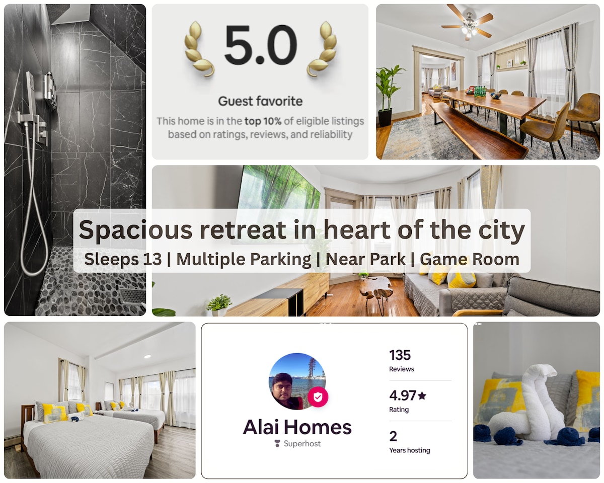 5卧室|距离纽约市仅几步之遥|餐饮|酒吧+游戏室+后院+停车位