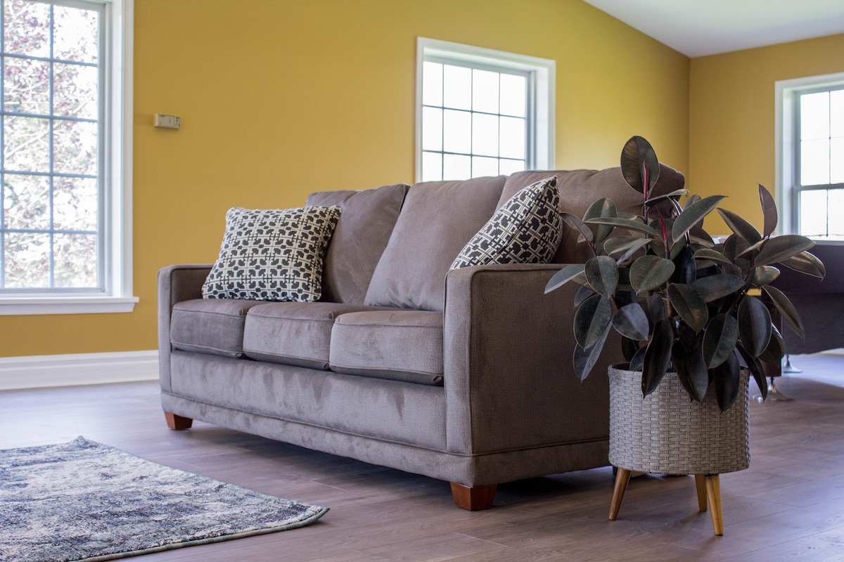 You would be staying in the back of our home on the lower level overlooking Chiques Creek w/private entrance. Free parking in front of house. The suite includes 1 bedroom and sleeps 4. One bedroom has Queen size bed, 50” LG Smart TV, Couch, & Chaise lounge. The kitchen has dishwasher a table w/6 chairs and a King Coil Queen size air mattress to accommodate 2 more guest, private room. : Pa Turnpike-7 min. Hersheypark-32-min Pennsylvania Renaissance Faire is16 min. We do allow pets.