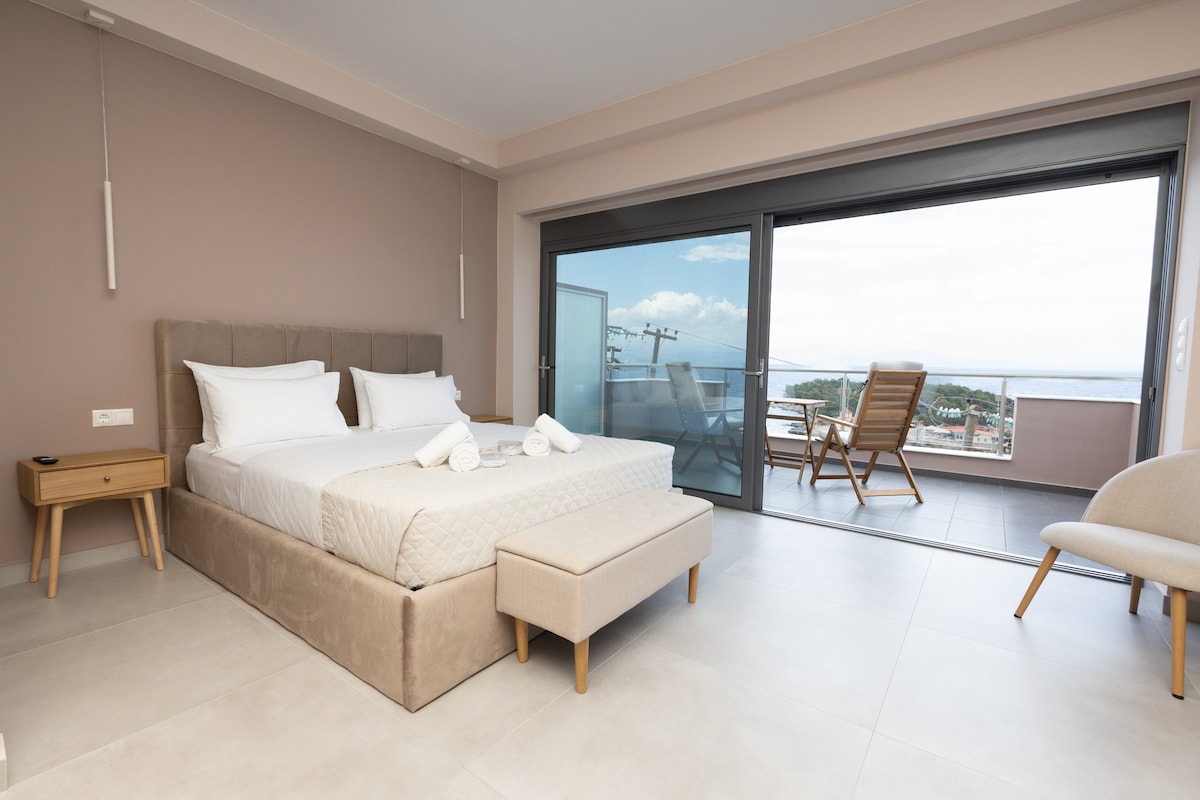 Αυτός ο μοναδικός χώρος έχει το δικό του στιλ. Στολισμένο με πέτρα και ξύλο σας χαρίζουν στιγμές αρμονίας και χαλάρωσης, εξοπλισμένο με όλα τα εφόδια για να απολαμβάνετε τις διακοπές σας! Απέραντη θέα στη θάλασσα και στο βουνό, με γαλαζοπράσινα νερά μπροστά στα πόδια σας, το μόνο που μένει είναι να κατεβείτε μερικά σκαλοπάτια! Για περισσότερη απόλαυση έχουμε εξοπλίσει το δωμάτιο με υδρομασάζ! Είμαστε σίγουροι οτι θα το απολαύσετε!!