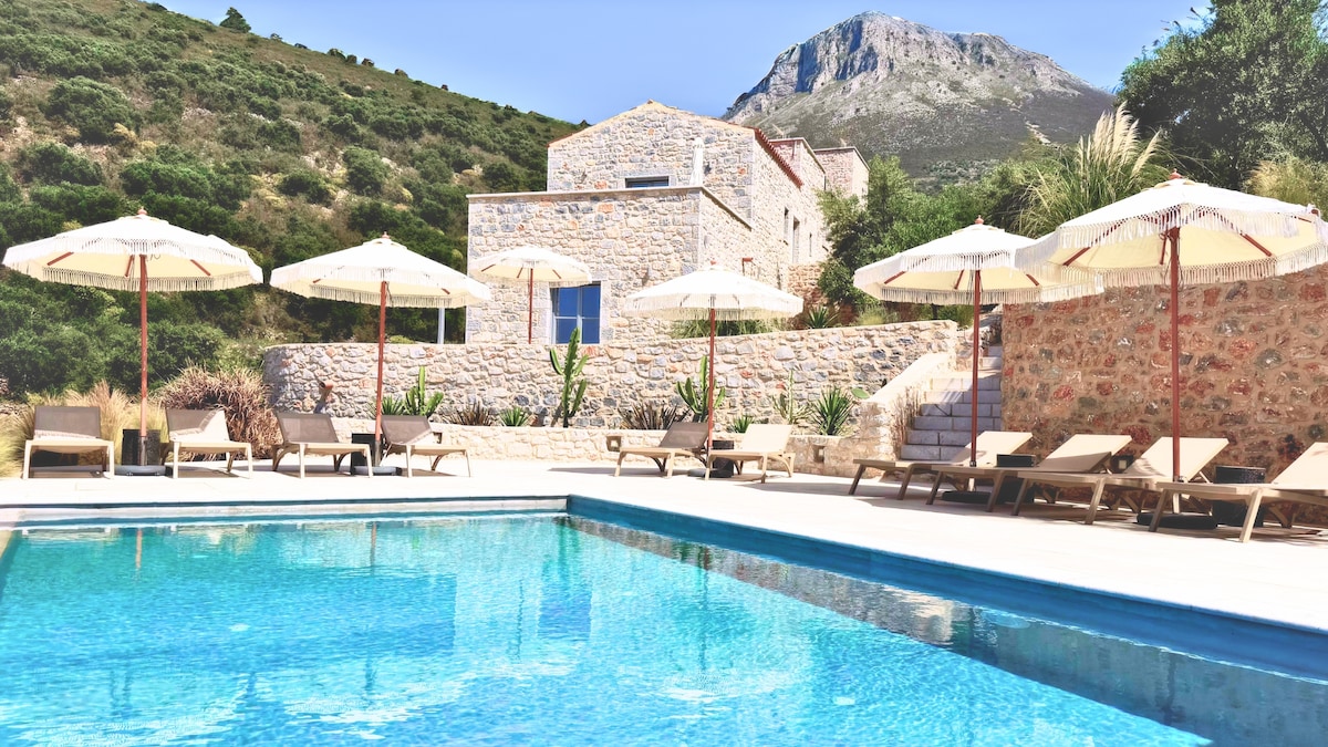 Escape to this exquisite stone-built holiday haven, where you can bask in the serenity by the outdoor pool. Near the charming town of Kardamili, you'll find yourself in the perfect location to unwind & explore. Just 1.5km from the sun-kissed Ritsa Beach, you'll have ample opportunities to soak up the coastal beauty & enjoy the Mediterranean sunshine. We offer complimentary WiFi, & for your peace of mind, we provide secure private parking. Book now for an unforgettable and rejuvenating vacation!