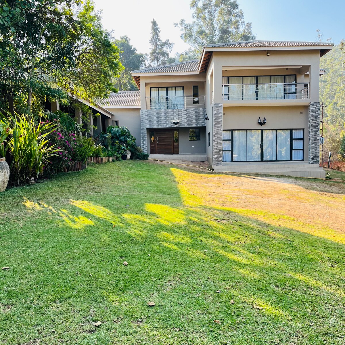 Reconnect with nature at this unforgettable escape.Come see the mist and breath the fresh air of Bvumba in this newly built holiday home.Share the experiences of the nearby Magic tree,waterfalls and hiking spots. This is a four bedroomed ,3 bathroomed holiday home with a fireplace and a children play room.The property has an open plan and a ten seater dining table for you, your family and friends.Groups can be accommodated easily with the option of outside tents.