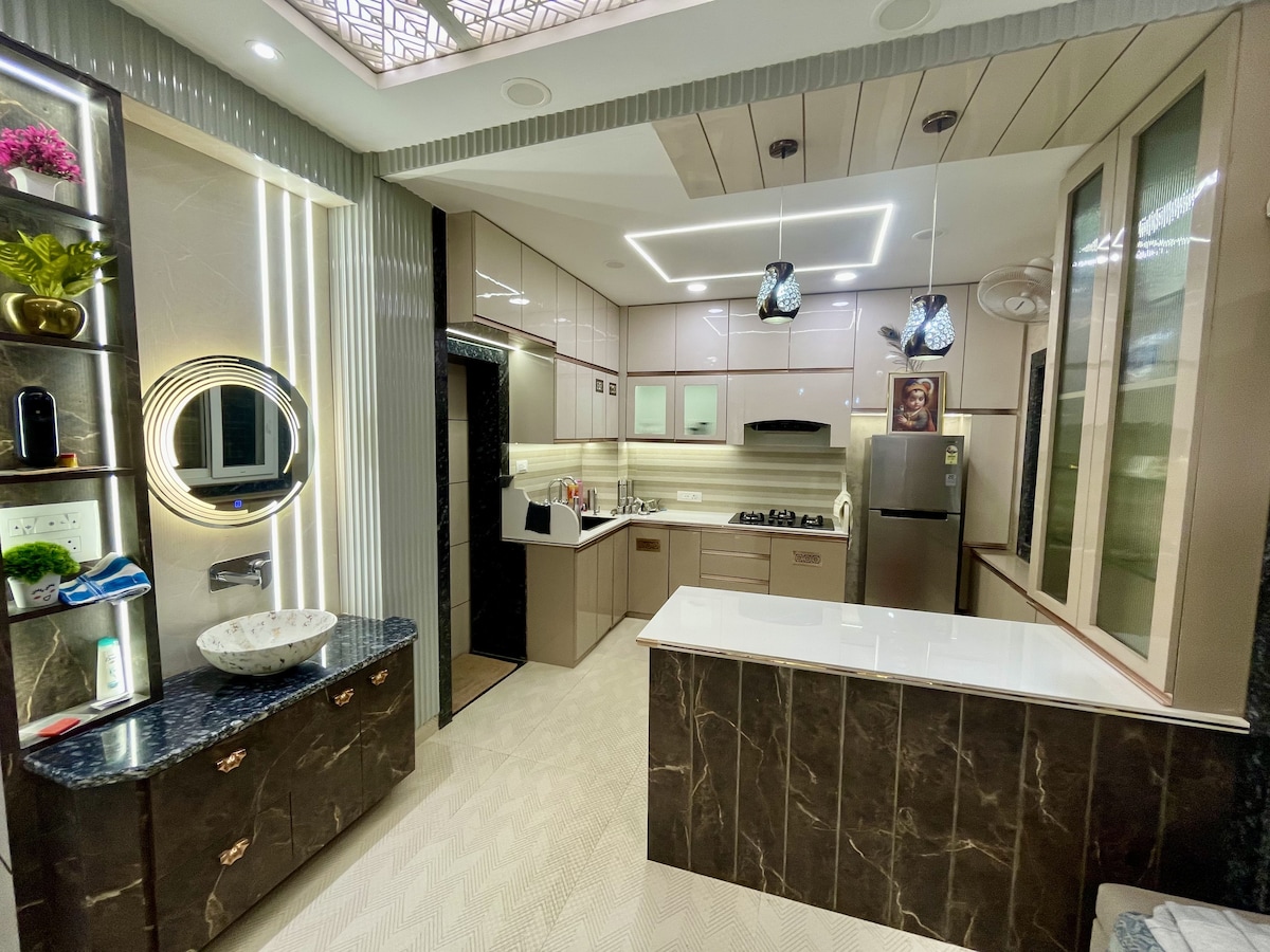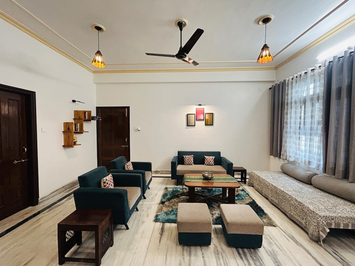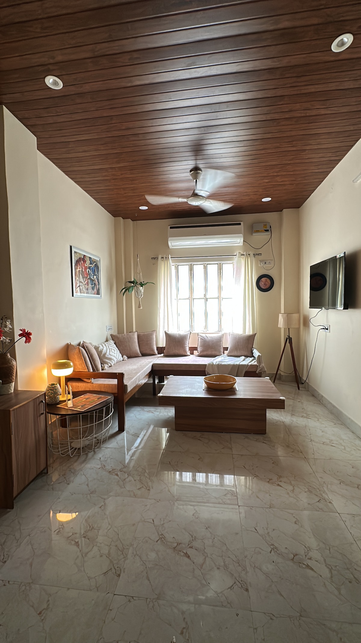 Bring the whole family to this great place with lots of room for fun. Your elegant retreat awaits at the Pearl of Varanasi. This brand-new, modern flat offers a perfect blend of comfort and style. Relax in an air-conditioned, two-room space with a plush king bed, smart TV, and all the amenities for a peaceful stay. We can also help arrange a cook at additional cost if someone needs home cooked meals.