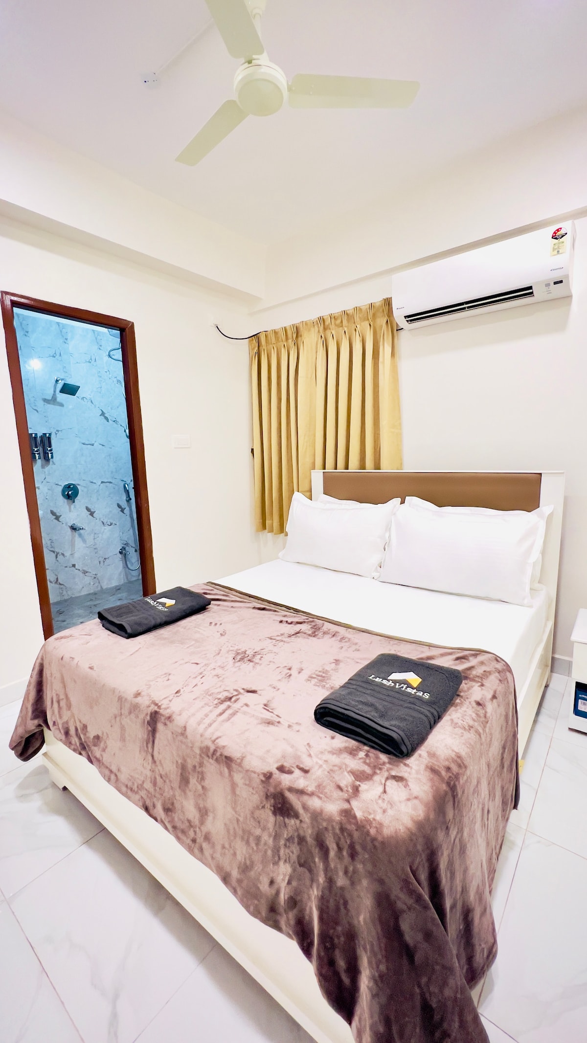 Luxury Banjara Hills Retreat Hyderabad's finest. A 5-star alternative in the most prestigious neighborhood. Accommodation: King Master Suite (designer decor, LED light, blackout). Bathrooms: 3 luxury baths with rain showers/glass enclosures. 3 in Total Kitchen: Fully equipped; includes washing machine. Features: Full A/C, marble floors. Access: On-site Gym & Pool (secured). (Can be unavailable at certain times) Proximity: Steps from high-end dining, shopping, and business centers.