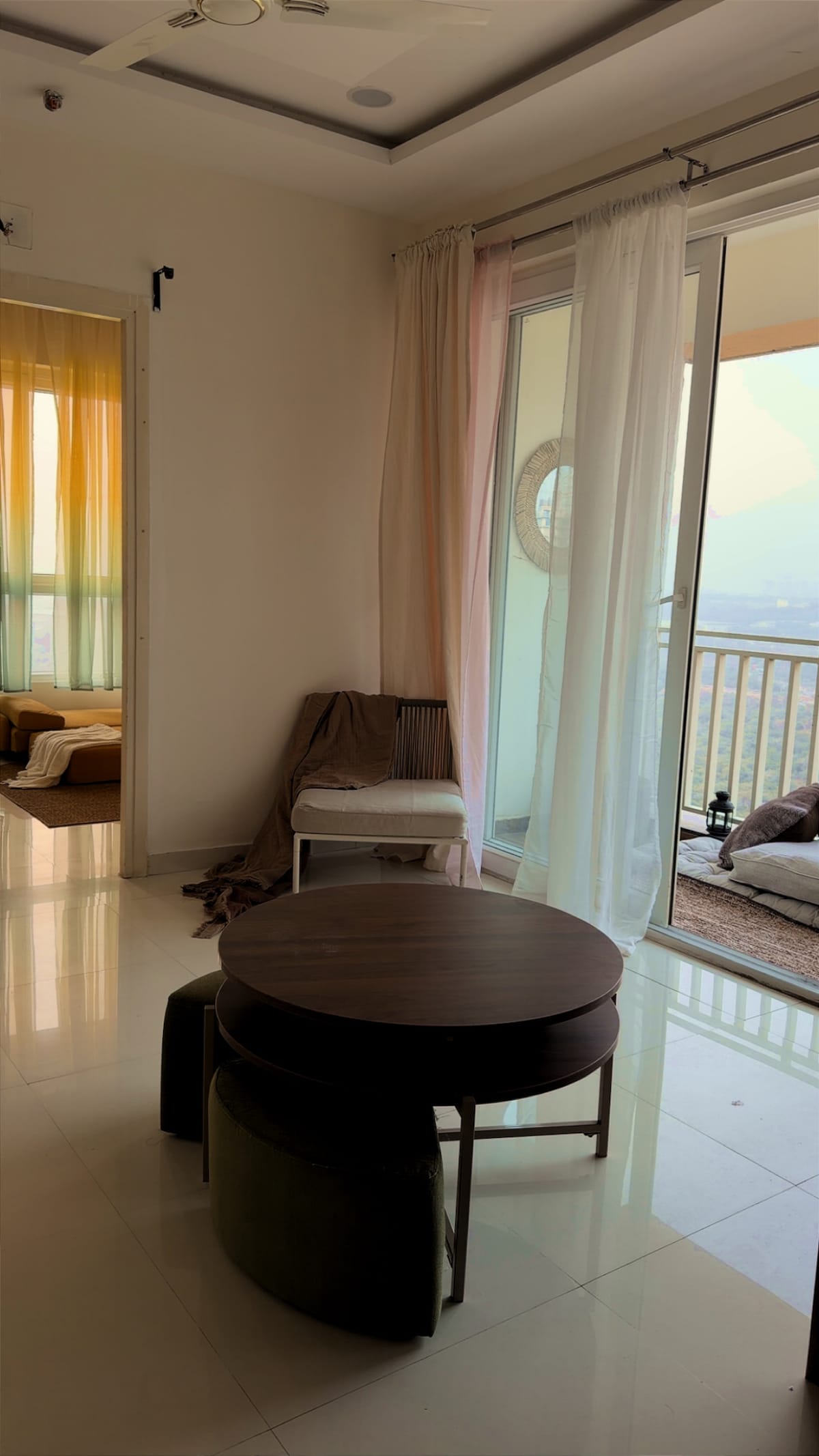 The Skyline Sunsets by Click & Space This is not a conventional 2BHK it is a home shaped by imagination, mood, and vibe. Designed as an experience rather than a basic formula, every detail has been curated to slow you down and invite you into its rhythm. We invite guests to arrive with curiosity, to wander, to linger, and to feel the atmosphere rather than measure it against the ordinary. The overall vibe of the home embraces slow living in the heart of the financial district ,HYDERABAD