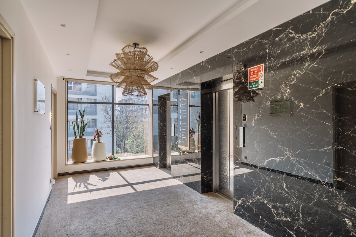 Luxury Banjara Hills Retreat Hyderabad's finest. A 5-star alternative in the most prestigious neighborhood. Accommodation: King Master Suite (designer decor, LED light, blackout). Bathrooms: 3 luxury baths with rain showers/glass enclosures. 3 in Total Kitchen: Fully equipped; includes washing machine. Features: Full A/C, marble floors. Access: On-site Gym & Pool (secured). (Can be unavailable at certain times) Proximity: Steps from high-end dining, shopping, and business centers.
