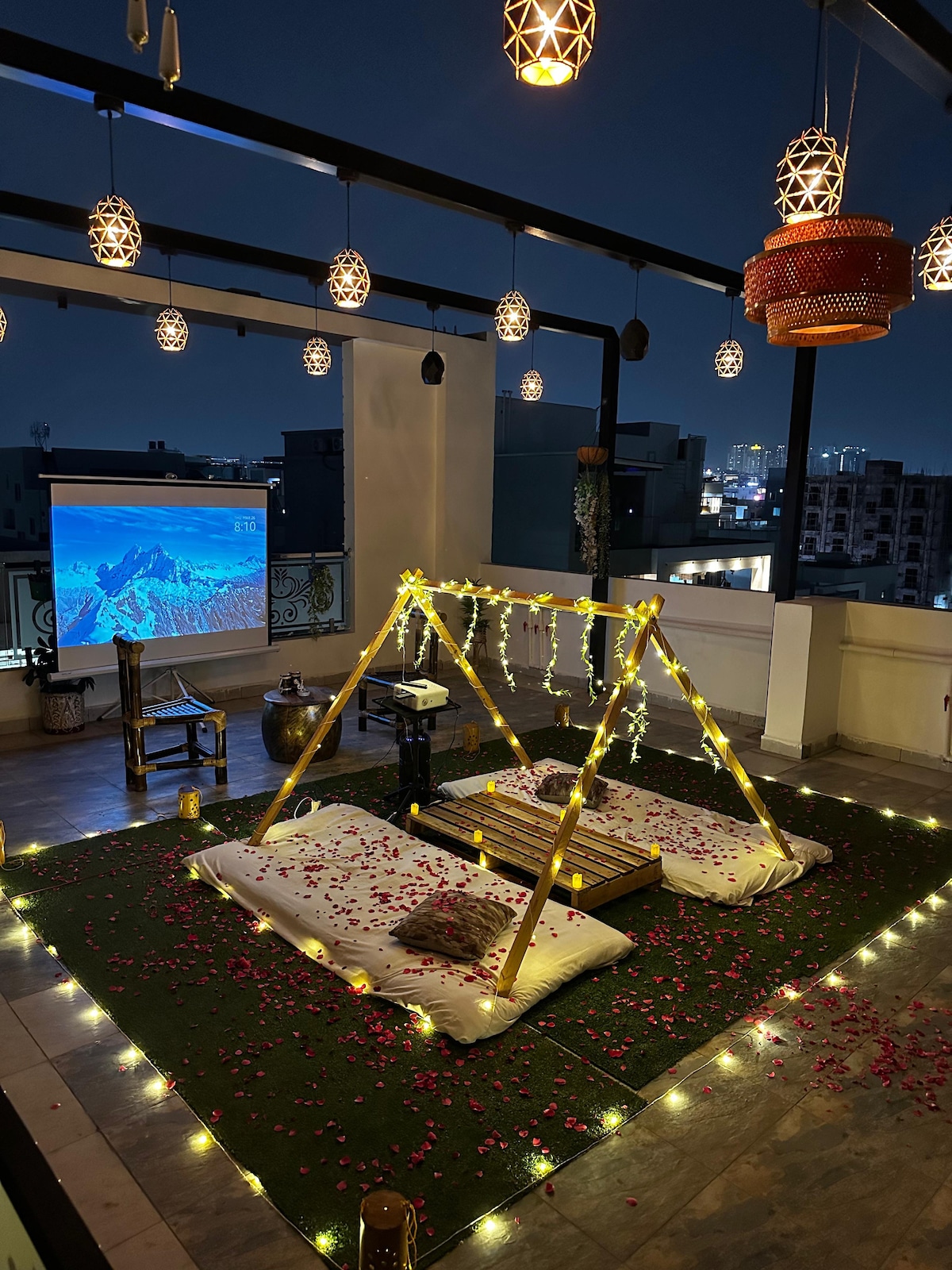 Escape to our serene penthouse retreat, thoughtfully designed with modern interiors and a cozy rooftop ambiance. Enjoy warm lighting, airy bedrooms, and scenic city views perfect for unwinding after a day out. Ideal for couples, friends, or solo travelers seeking comfort, calm, and an elevated city stay.