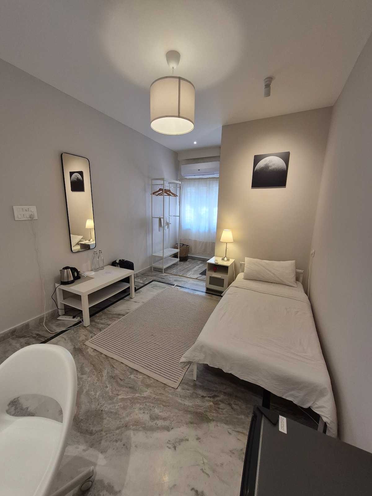 A studio carefully designed by me, offering pure elegance & functionality, making you feel home & comfy. 24 hour male/female guard Short walk: Supermarkets Restaurants Park Hospital You're just: 14 minutes - Financial Dist. 19 minutes - Hitech city 37 minutes - Airport (RGIA) Your stay includes: Parking Snacks Cold/hot beverages Towels Private bathroom Water geyser No-bugs Housekeeping Electric kettle Mini-Fridge Air conditioner 24 hour electricity backup