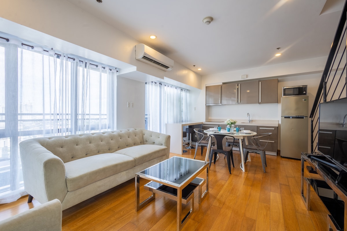 Modern&spacious 1BR w/ balcony and pool just a few kilometres from the airport and within walking distance from numerous attractions in the Manila Bay area. Well-equipped kitchen, sunlit living room, comfortable bed, Wi-Fi, Netflix, aircon & TV in both living and bedroom. Perfect place to stay for couples, small families or business travellers. Sauna and kids play area - free to use Pool - free up to three guests; P200 for each additional guests.