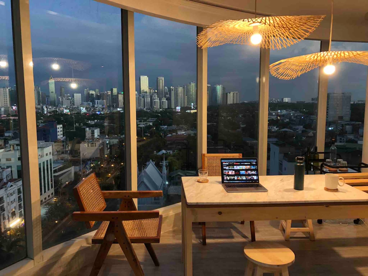 This unique place has a style all its own.Clean, safe and cozy Makati location in the heart of Metro Manila, in an eclectic and laid back neighborhood. 24/7 security. Free & fast Wifi. Quiet air con, large comfortable bed. Freshly renovated kitchen and bathroom fixtures. Variable lighting. Welcome and cold drinks. Spacious, Bright, Zen Abode with a Rockwell Skyline view for you to enjoy with company and friends. A relaxing, modern, well-equipped kitchen, a stunning home away from home.