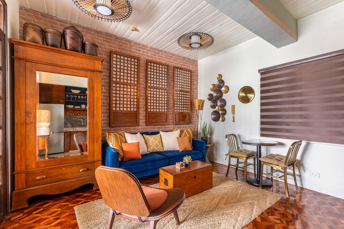 Perfectly situated in the heart of the Poblacion, Makati Restaurant and Entertainment District, our unit is located on the 5th floor of a boutique condo building w/ 24 hour security. Our 1br boasts views, a 50s mid-century modern interior and amenities including a 55" tv, Netflix, 300 Mbps, w full kitchen. Walk to nearby bars, casual restaurants, and fine dining. Experience art and culture! The perfect destination for couples, solo adventurers, a business traveler, short trips, and vacation!