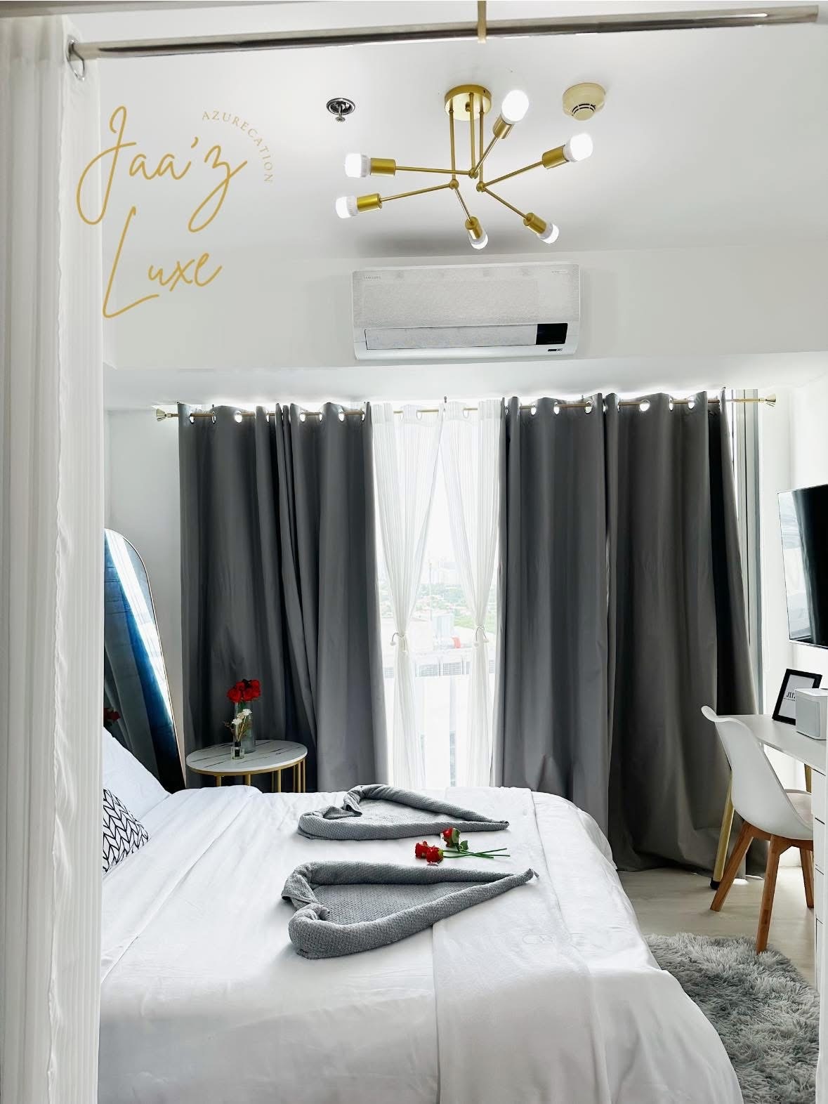 Working remotely (w/ a 300mbps wi-fi) or wanting a staycation (w/ Netflix on a 50" tv)? Worry no more as our cozy 1-BR haven in Azure Urban Resort Residence, the first ever large-scale man-made beach paradise in Metro Manila, can cater to both needs! Located just 13km away from NAIA airport & just 700m away from SM Bicutan Mall, the resort boasts in its amazing views and world class amenities such as white sand man-made beach, wave pool, beach bar, spa, & children’s playroom, to name a few.