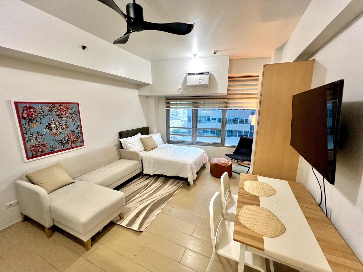 Unwind in this modern tropical studio hideaway at Ferros Bel-Air Tower Condominium with fast internet, a 50" Smart TV w/ Netflix, and a fully-equipped kitchen. Nestled in the vibrant Poblacion, Makati City, where old meets new, discover trendy cafes, eateries, and popular hangouts in the bustling Metro. Convenience abounds with walking proximity to Powerplant Mall, Century Mall and Makati Avenue, ensuring all your needs are met.