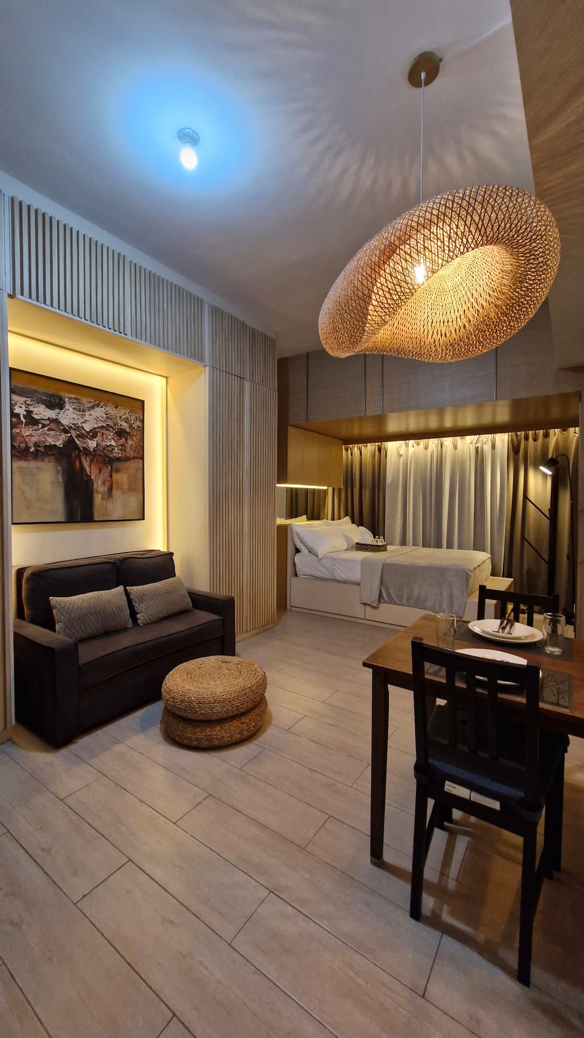Enjoy a relaxing stay at this fully-furnished, with a great balcony view — Muji hōme-tél in the heart of Makati! HIGHLIGHTS: 55' UHD TV with Netflix and Disney+, LG Washer & Dryer, Cookware & Utensils, Dyson V15 Vacuum, Automatic Curtains & Digital Doorlock. The unit is located in Air Residences, an award-winning tower with its own Lobby Mall sitting along Makati's central business area, Ayala Avenue. Automatic: 5%off on a 1-week stay & 10%off on a 30-day stay.^^