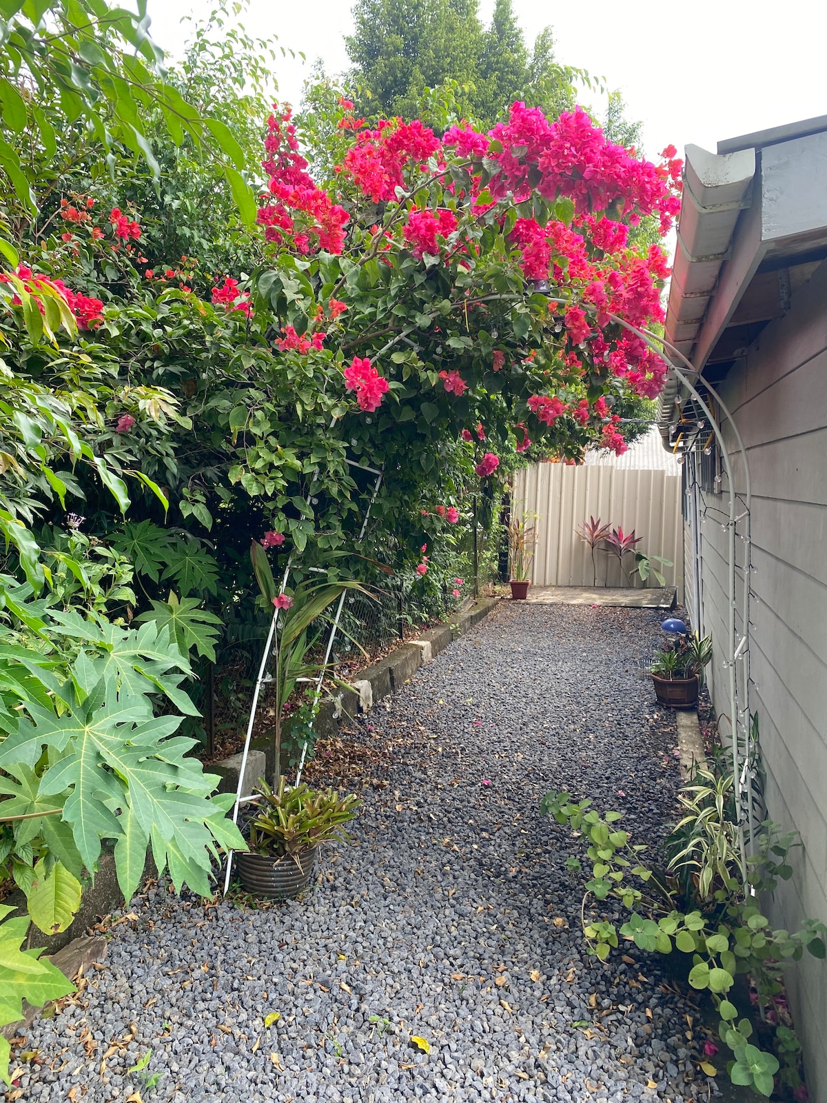 Our Downstairs Garden Unit 1 is well lit with 2 doors to enter and exit by. It is tiled throughout, with a queen-sized bed. Ideal for a couple although a single person stay works just as well. Utilities included in price. You will share the courtyard and parking area with other guests entering or leaving the property. Noise is kept to a minimum, so we expect guests to have peace and quiet for resting. Windows are screened for security and keeps the flies and mosquitoes away