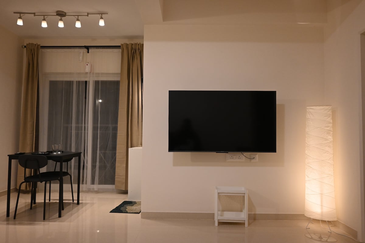 Welcome to your peaceful retreat! This spacious Villa features a comfortable queen bed and an extra single mattress. Stay cool with air conditioning, and enjoy entertainment with Smart TV. Step out onto your private balcony to relax. The Villa includes a fully-equipped kitchen with a gas stove, utensils, a water purifier and a fridge, ideal for preparing your own meals. You’ll have a cozy living and dining area to unwind in comfort. Enjoy the convenience of free parking and complete privacy.