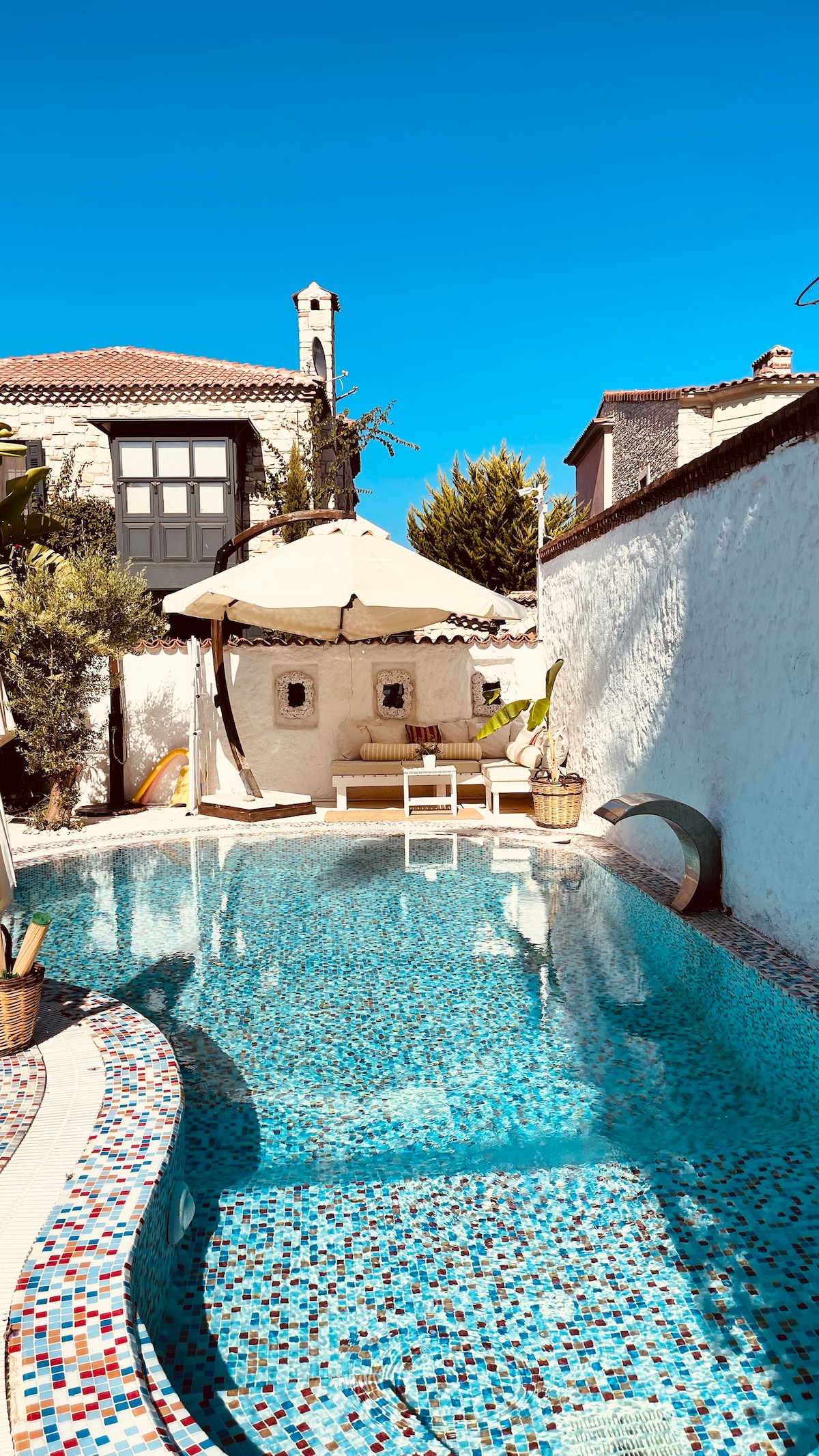 Alaçatı köyiçinde büyük spa küvetli jakuzili oda