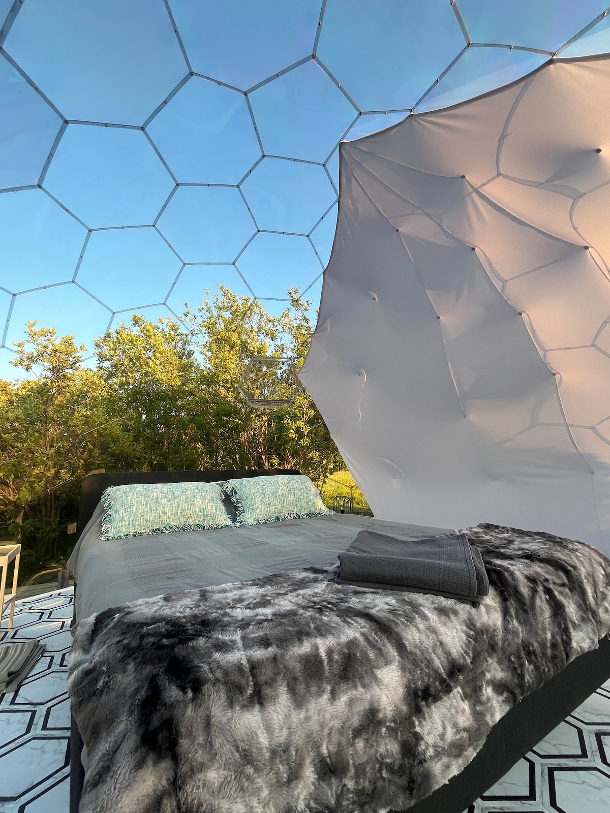 This isn’t just glamping, it’s a soul-soothing, riverfront reset wrapped in luxury comforts, designed for two. Whether you’re celebrating something special or just need to step away from the hustle, this peaceful dome retreat is your hideaway… with all the perks you love.