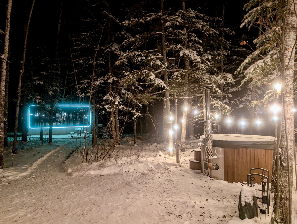 🌲 Luxury Glamping Pod | Nature Meets Comfort | Navigate Pinawa 🌲 Escape the ordinary and immerse yourself in nature without sacrificing comfort at our eco-luxury glamping pods, nestled right across from the stunning Old Pinawa Dam. 🛌 Each pod features: ✔️ A cozy, fully-furnished interior with a queen bed ✔️ Wood-burning sauna & hot tub access (shared) ✔️ Private fire pit - Guests can reserve private two-hour time slots for the sauna and hot tub to ensure a completely private experience.
