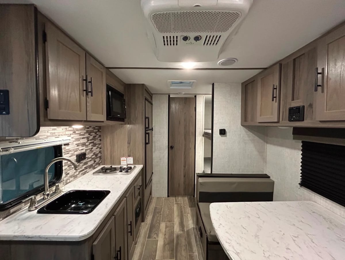 Relax with the whole family at this peaceful place to stay amongst our up and coming horse farm. Take a relaxing trail ride or just a getaway outside of the city; though we are located next to the train tracks, you are situated on 110 acre farm with groomed trails on site. This 4 seasons trailer has its own bathroom and kitchen; towels and dishes provided. Sorry no pets allowed as this is a fully functioning farm with various animals on site.