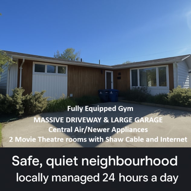 Stay in a comfortable four-bedroom, three bathroom bungalow in a quiet, safe Thompson neighborhood. Enjoy a full gym with surround sound, a cozy entertainment room with a wet bar, and three big screen TV's. Relax on the deck with a Broil King Barbeque or unwind by the back yard fire pit. WIth tons of parking and easy access to loacl amenities, this home is ideal for families, work crews, or anyone looking for a clean, convenient stay in northern Manitoba.