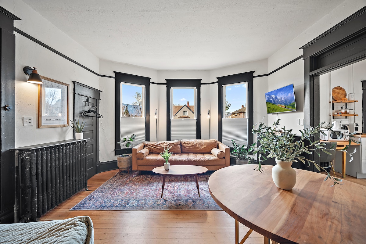 Come stay at the coolest Airbnb in town. This hip, colorful, fun, quirky downtown space is an upstairs apartment with keyless entry. The aspen suite is a newly beautifully decorated one bedroom with comfy queen size bed. Living area with love seat, tv, bar top dining, full kitchen and private bathroom with claw foot tub. Enjoy access to full size washer:dryer. Minutes from the shopping and dining of downtown Colorado Springs. Permit number STR1077