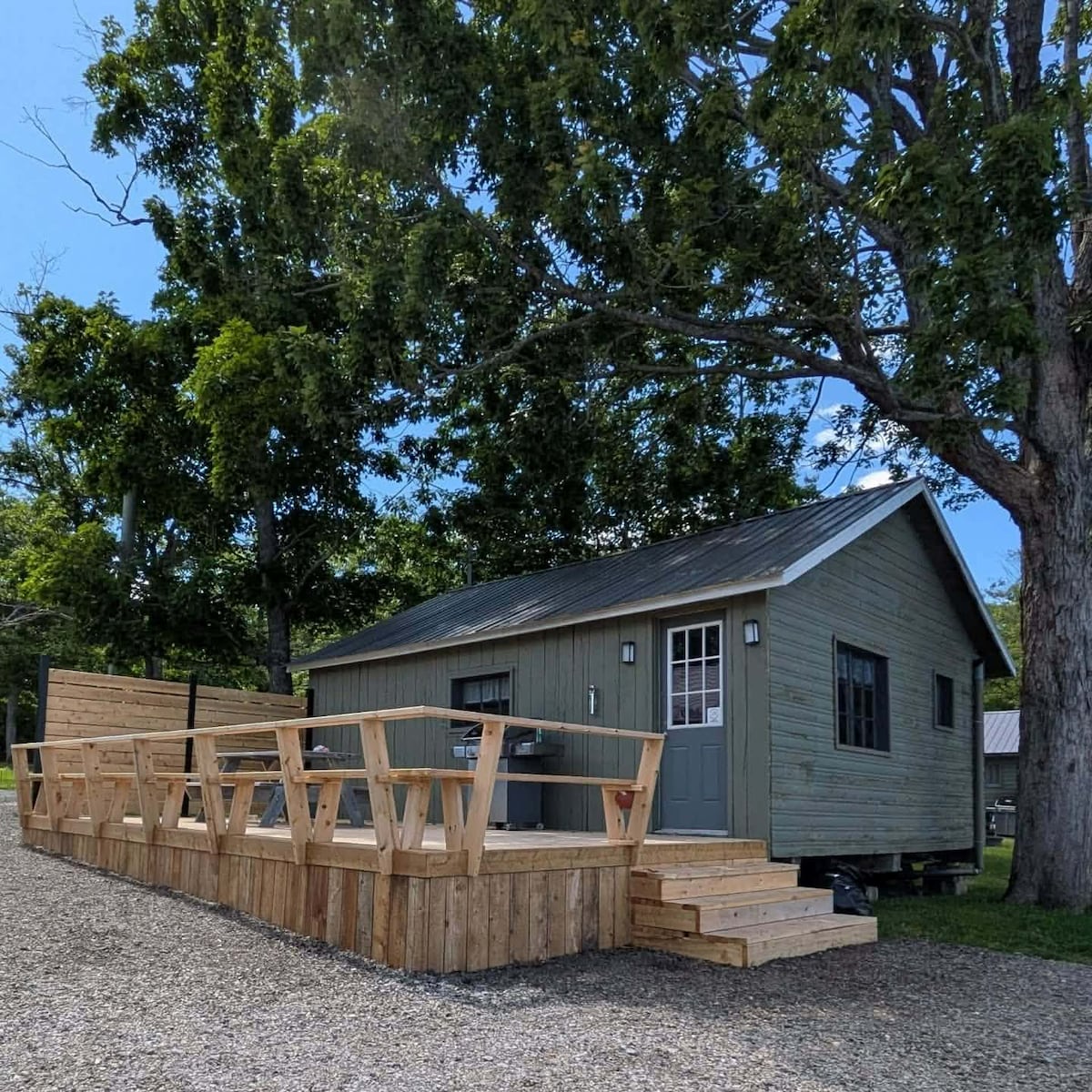 A breathtaking view, surrounded by nature in a unique & peaceful setting, you will have it all! Enjoy a beautiful ADULT ONLY destination where you will truly find peace, tranquility & privacy. A 10 x 20 cedar bunkie, "Travellers Heart", is set in a picturesque clearing in the shade of mature maples. There is a private washroom & a charming outdoor kitchen (shared with 3 on-site glamping tents) A short trail brings you to Indian Point, one of the best private elevated views on the island!
