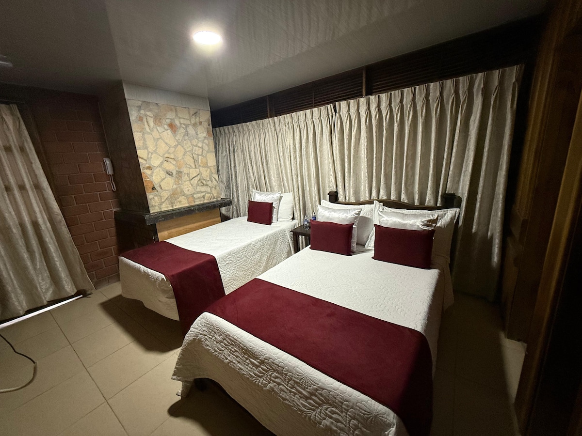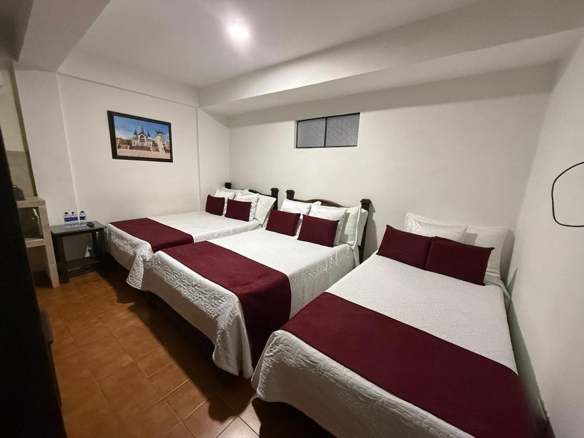 ,Habitacion con dos camas semidobles y una cama individual, ideal para 2 parejas, y una persona. cuenta con lencería, guarda ropa, mesa pequeña de noche, baño privado con agua caliente, cocineta, nevera ( para estadías mayores a 15 días), servicio de wifi, parabólica y tv, Servicio de recepción y vigilancia las 24 horas. rom service matutino, botella de agua. te ofrecemos en la manaña una rica merienda. servicio de mensualidad con descuento, para corporativos, estudiantes y afines.