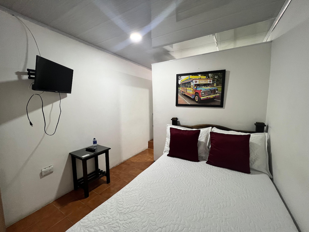 Habitación tipo loft independiente con una cama semidoble, ideal para una persona o una pareja, cuenta con lencería, mesa pequeña de noche, baño privado con agua caliente, cocineta, nevera ( para estadías mayores a 15 días), servicio de wifi, parabólica y tv, Servicio de recepción y vigilancia las 24 horas. rom service matutino, botella de agua. servicio de mensualidad con descuento, para corporativos, estudiantes y afines.