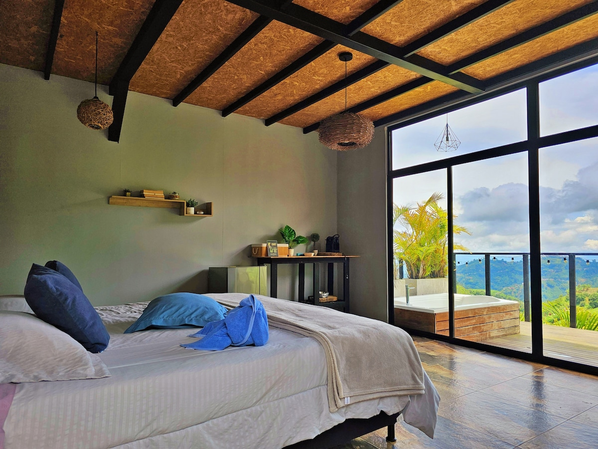 Descubre Villa Luna, un refugio de lujo en el corazón del paisaje cultural cafetero. Rodeado de cafetales y naturaleza, este espacio privado ofrece cama king size, ducha caliente con vistas a los paisajes cafeteros, jacuzzi climatizado de piedra natural, cocina y una malla catamarán para disfrutar de las vistas. Perfecto para desconectarte, relajarte y vivir momentos inolvidables. Incluye desayuno gourmet para dos personas. ¡Haz de tu estadía una experiencia única en el eje cafetero!