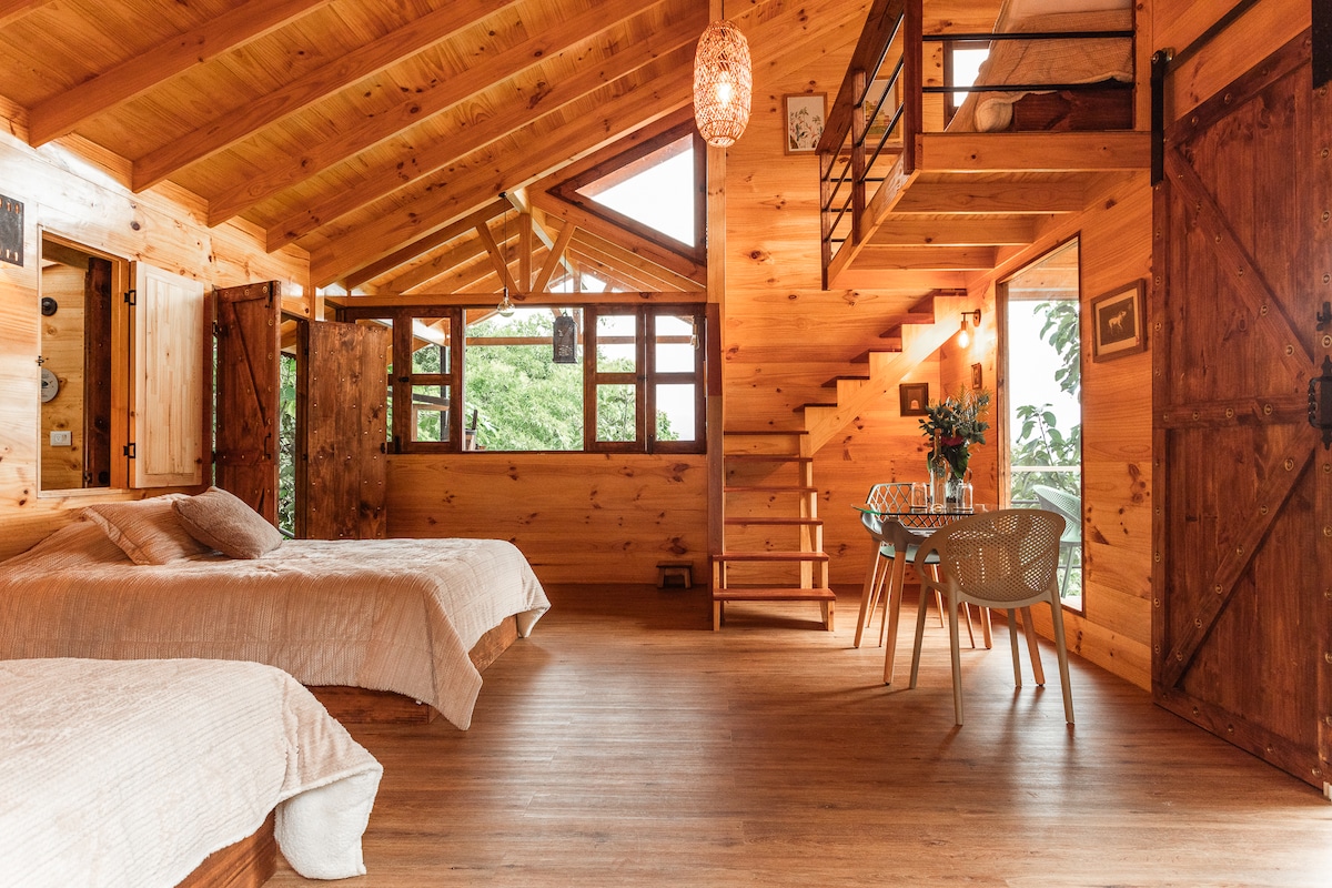 Stay in a dreamy cabin in the middle of the forest. Stroll through trails and gardens, and enjoy the lush natural surroundings and sunsets from your balcony. Gaze keenly at the birds among the trees and enjoy a revitalizing bathing experience surrounded by nature. Located just 25 minutes from downtown Manizales, 15 minutes from Neira, and 40 minutes from El Otoño Hot Springs.