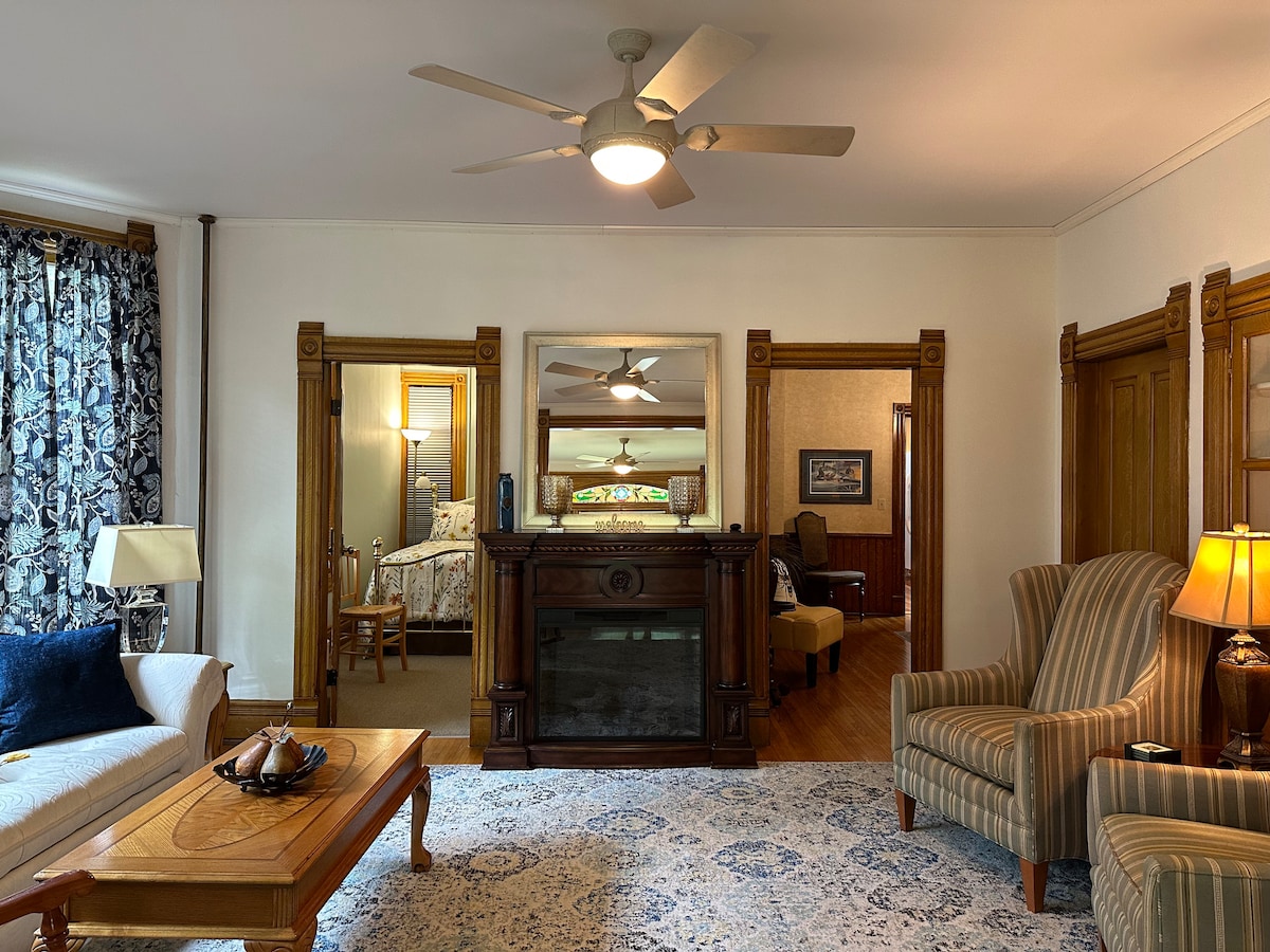 Spacious and private guest home (no shared living space) with separate entrance, off-street parking. King size bed, additional single bed in the living room. Single rollaway and a portable crib are also available. Full kitchen with dishwasher and all necessary cooking utensils, off-street parking (two car limit), private patio with grills, living room with gas fireplace, work station, guest Wi-Fi, and onsite private laundry with laundry soap, softener, and dryer sheets.