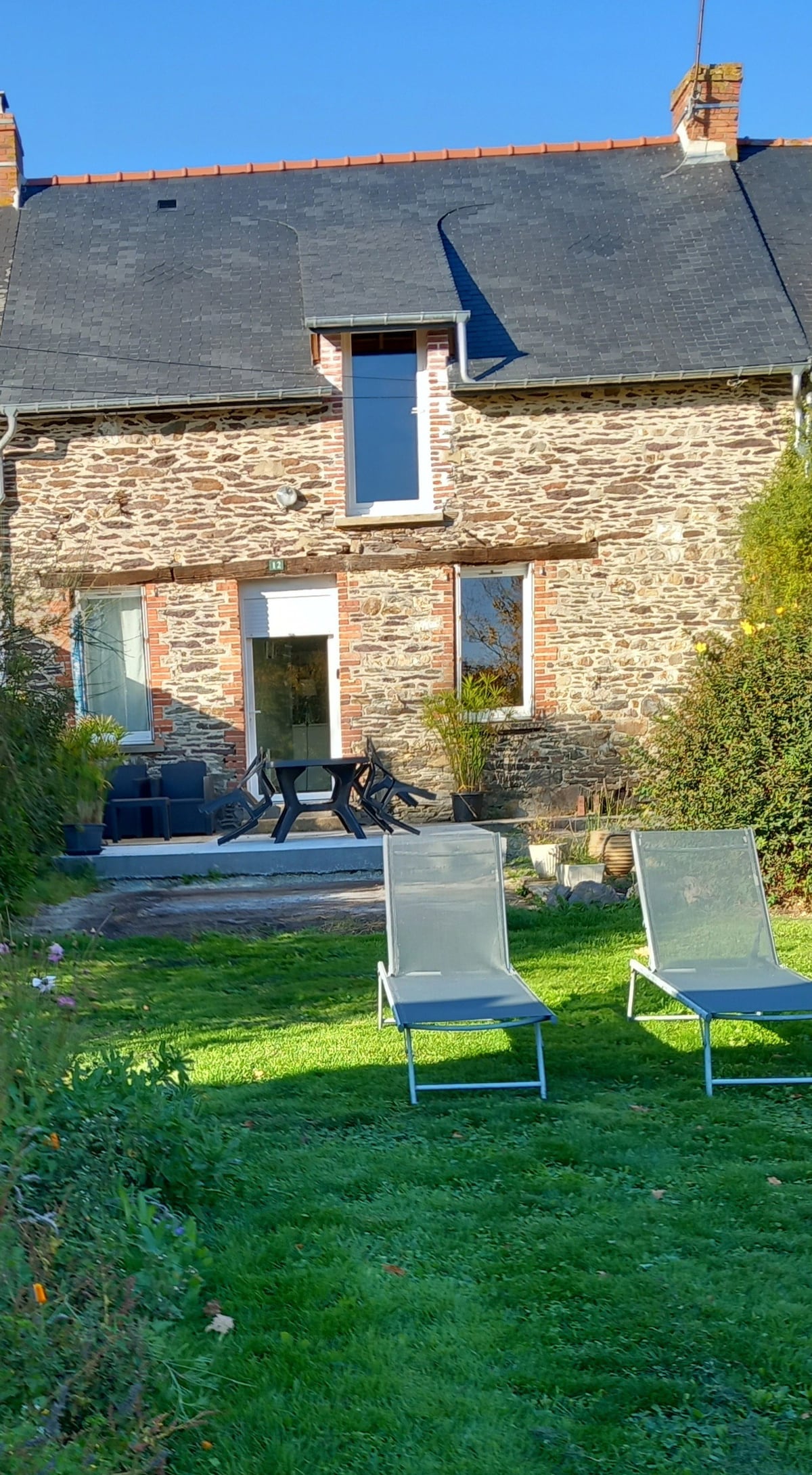 Venez découvrir notre logement de 90m², entièrement rénové et situé en plein bourg de Lohéac. Un jardin partagé non attenant de 300m2 situé à 50 mètres de l'hébergement est à disposition des voyageurs : barbecue, table, chaises et transats y sont. Linge de maison (draps, serviettes) et ménage sont en option. Le logement peut accueillir jusqu'à 11 adultes, plus des bébés.